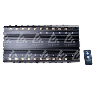 Подавитель сигналов с 22 антеннами — полноспектровая мобильная платформа радиоэлектронного противодействия, предназначенная для локальной защиты помещений и периметров от несанкционированной радиосвязи и беспилотной техники. Модель сочетает расширенное частотное покрытие (мобильные сети 5G/LTE/4G/3G/2G, Wi-Fi 2.4/5.8 GHz, GPS L1–L5, UHF/VHF радиостанции, RC-каналы 315/433/868 MHz, LOJACK и др.) с мощной многоканальной антеннной матрицей (22 внешние антенны), что обеспечивает гибкую конфигурацию зоны подавления.