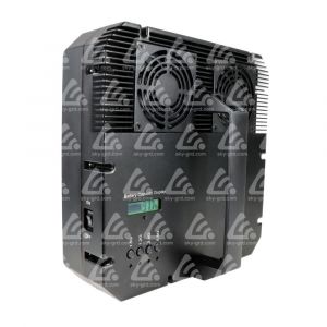 Аппарат рассчитан на тактическое и оперативное применение: компактный корпус (260 × 260 × 122 mm), масса 3.0 kg и встроенный аккумулятор 24 V / 4.8 Ah обеспечивают мобильность и автономность (30–60 min в зависимости от режима). Питание — универсальный вход AC110–240 V с выходом DC24–28 V. Система охлаждения — высокоэффективный алюминиевый радиатор и принудительное вентиляторное охлаждение — поддерживает эксплуатацию на повышенных нагрузках. Конструктив включает направленные антенны, рельсовую планку для прицела, отверстие 1/4" для крепления на штатив/софт-фиксатор и комплектный портативный кейс.